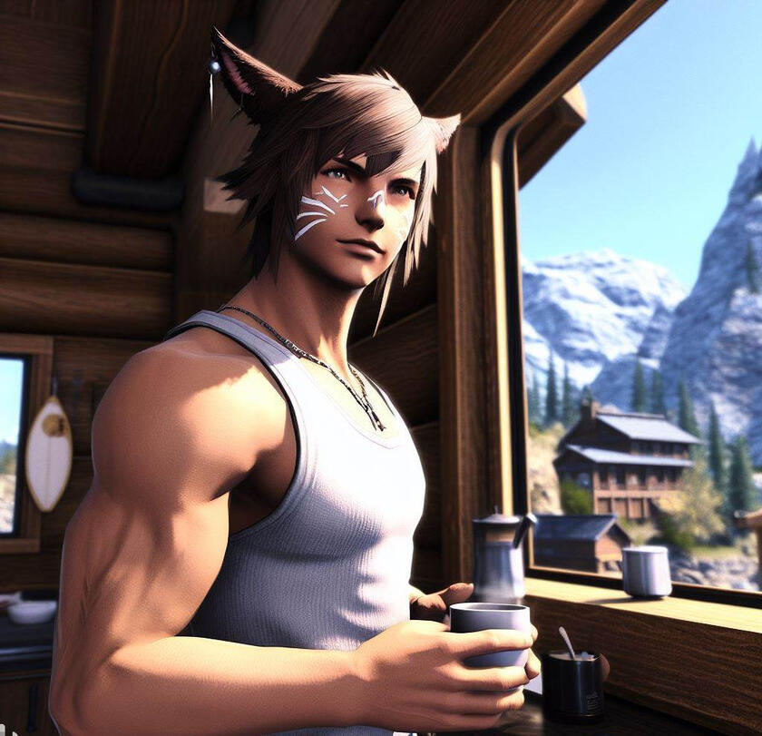 The log cabin sits amongst the natural beauty of the area, surrounded by lush foliage and peaceful animals, a place of peace and tranquility. Kai'to spends a lot of time enjoying the view, whether that's lying in a hammock, sitting on a log or climbing a tree, taking a moment to appreciate the stunning scenery. There are numerous activities to keep everyone entertained, from hiking the nearby trails to fishing in the lake, and from camping on the beach to exploring the town. Every summer, the community comes together for a big event, making the most of the warm and sunny weather. There's always delicious food, music, dancing and laughter, and everyone has a great time. Kai'to Tye lives a peaceful and happy life in the log cabin, surrounded by an incredible community of locals. He loves spending time outdoors, helping and supporting others, and gets to experience the awe-inspiring natural beauty of the area.Once ever year an social event and party takes place on the campsite is something that he looks forward to every year, and Kai'to knows that he is part of a family, a place he will always call home.He helps to clean the area around the cabins, muck out the stables, collect water and help out with any small jobs that may need doing. He has become an integral part of the community, always keeping busy but also providing help and support whenever possible.As he grew apart from his pact, he had chosen to make his home in the city of Kugane, where he could pursue his martial arts training without interruption. He lived as a volunteer in a small village South-East of the central city, where he would help the locals with their daily tasks, fishing, cooking, cleaning, and farming, and respectfully become one of the locals in this tight-knit community.Kai’to is also very fond of his motorcycle, which he often takes on weekend adventures away from home. His travels often take him to various locations around Othard, often running into old friends or discovering new and mysterious locations. With a passion for exploring and a keen eye for treasure, Kai’to shows no signs of slowing down.Kai’to returns to his log cabin on the edge of Kugane to rest and relax with the closest of his friends. Kai’to is an adventurous spirit - always looking for new opportunities and experiences - but at the same time, fiercely loyal and protective of those he cares about. This is a Miqo’te on a mission to make a name of himself and share his many stories with the world.