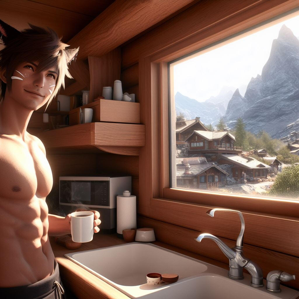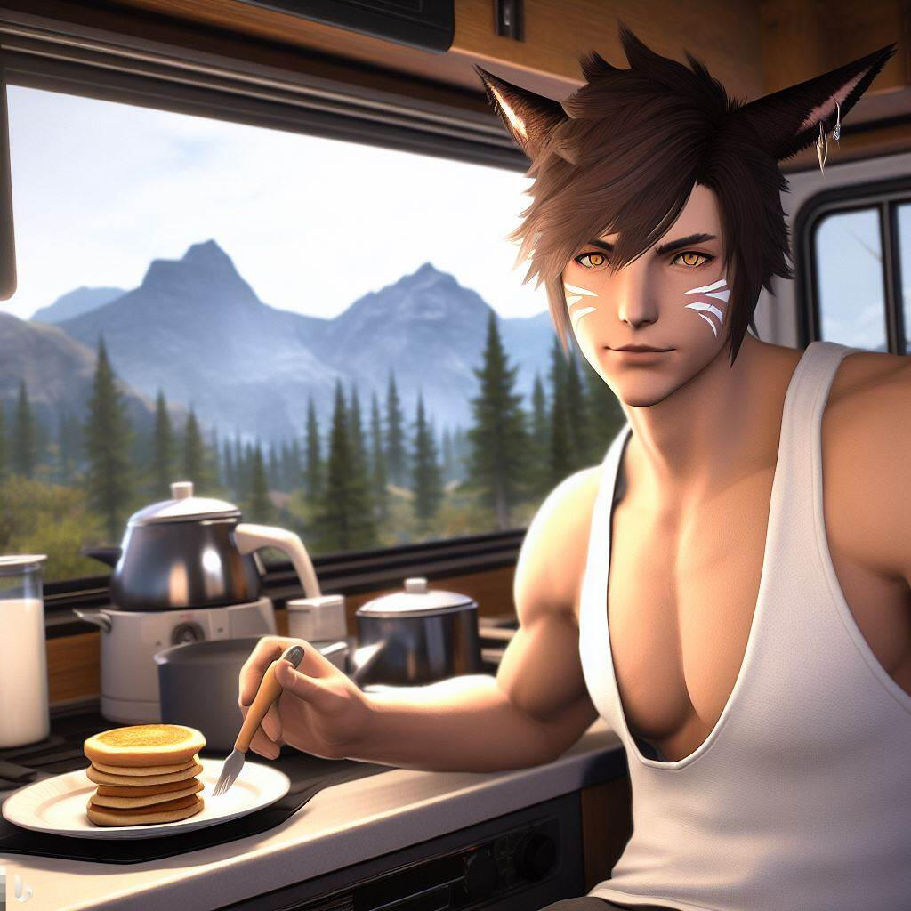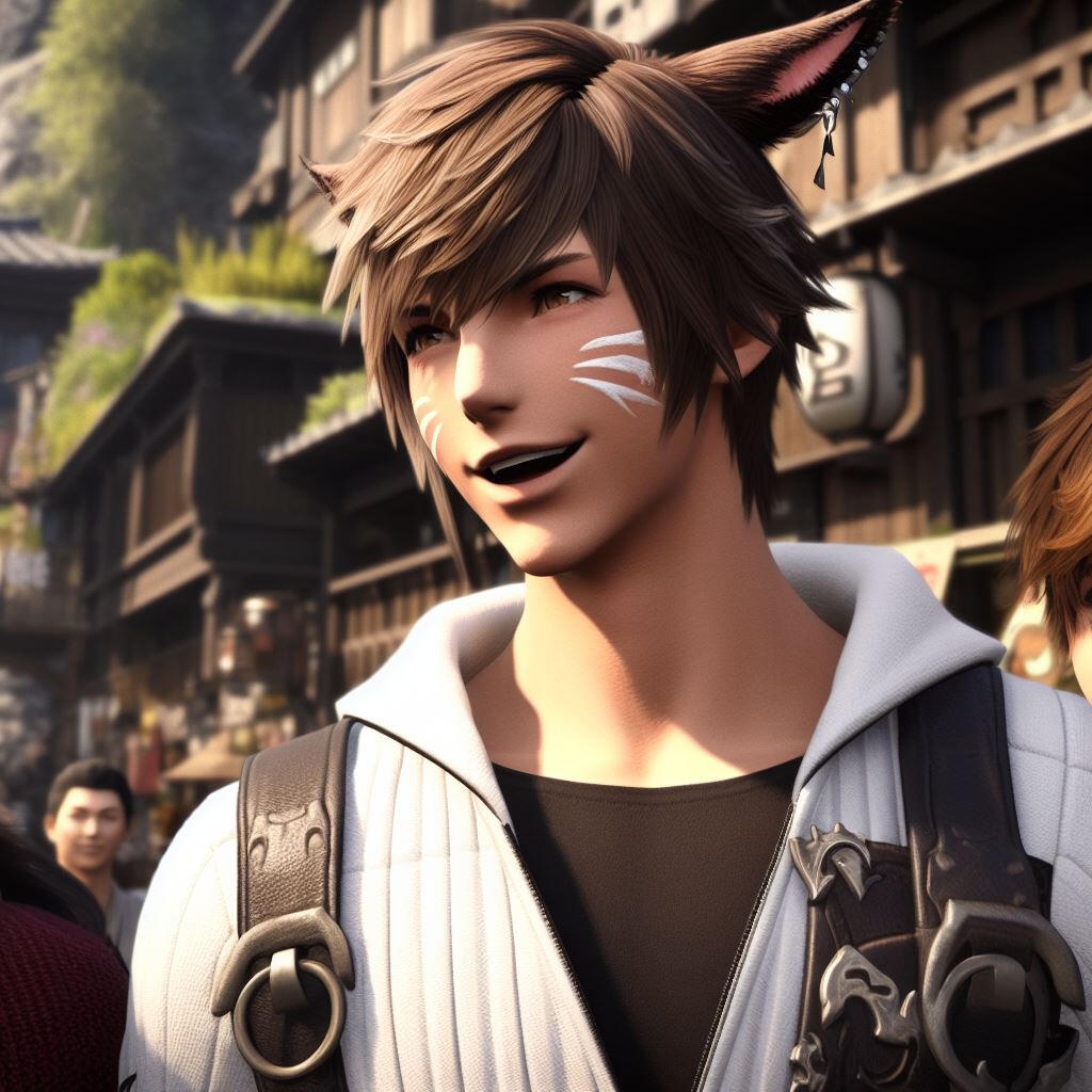 The log cabin sits amongst the natural beauty of the area, surrounded by lush foliage and peaceful animals, a place of peace and tranquility. Kai'to spends a lot of time enjoying the view, whether that's lying in a hammock, sitting on a log or climbing a tree, taking a moment to appreciate the stunning scenery. There are numerous activities to keep everyone entertained, from hiking the nearby trails to fishing in the lake, and from camping on the beach to exploring the town. Every summer, the community comes together for a big event, making the most of the warm and sunny weather. There's always delicious food, music, dancing and laughter, and everyone has a great time. Kai'to Tye lives a peaceful and happy life in the log cabin, surrounded by an incredible community of locals. He loves spending time outdoors, helping and supporting others, and gets to experience the awe-inspiring natural beauty of the area.Once ever year an social event and party takes place on the campsite is something that he looks forward to every year, and Kai'to knows that he is part of a family, a place he will always call home.He helps to clean the area around the cabins, muck out the stables, collect water and help out with any small jobs that may need doing. He has become an integral part of the community, always keeping busy but also providing help and support whenever possible.As he grew apart from his pact, he had chosen to make his home in the city of Kugane, where he could pursue his martial arts training without interruption. He lived as a volunteer in a small village South-East of the central city, where he would help the locals with their daily tasks, fishing, cooking, cleaning, and farming, and respectfully become one of the locals in this tight-knit community.Kai’to is also very fond of his motorcycle, which he often takes on weekend adventures away from home. His travels often take him to various locations around Othard, often running into old friends or discovering new and mysterious locations. With a passion for exploring and a keen eye for treasure, Kai’to shows no signs of slowing down.Kai’to returns to his log cabin on the edge of Kugane to rest and relax with the closest of his friends. Kai’to is an adventurous spirit - always looking for new opportunities and experiences - but at the same time, fiercely loyal and protective of those he cares about. This is a Miqo’te on a mission to make a name of himself and share his many stories with the world.
